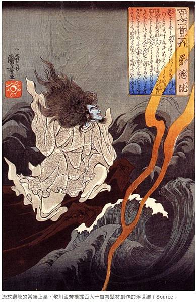 流放讚岐的崇德上皇。歌川國芳根據百人一首為題材創作的浮世繪(Source:Wikipedia)