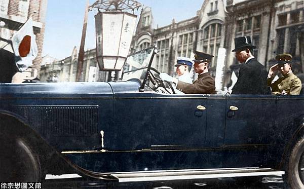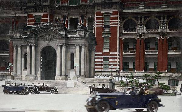 1925年,雍仁皇子禮車和護衛車隊抵達臺灣總督府。日本皇室成員經常訪問臺灣,天皇直系的皇子由於在天皇的繼承上排在最前面,屬於最高位階,因此總督府以最高的規格安排接待工作。(取自徐宗懋圖文館製作出版「台灣歷史珍稀影像1860-1960