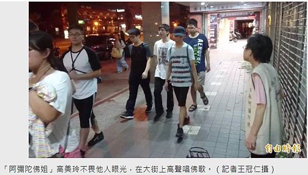 「阿彌陀佛姐」高美玲不畏他人眼光,在大街上高聲唱佛歌。(記者王冠仁攝)