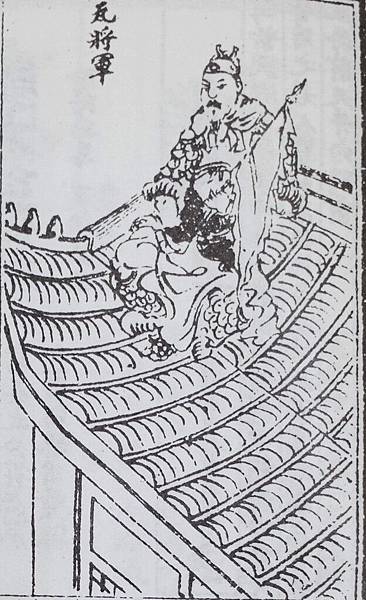 及吳瀛濤《台灣民俗》:「瓦製武人坐像置於屋上者,俗稱瓦將軍。」