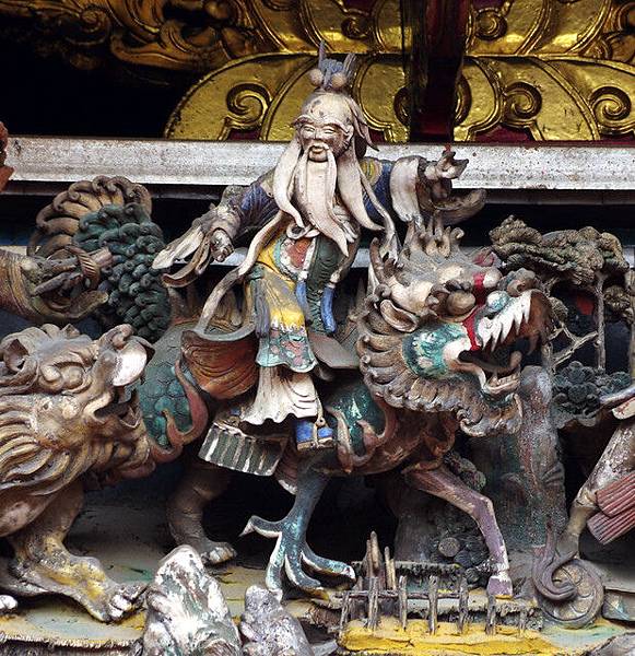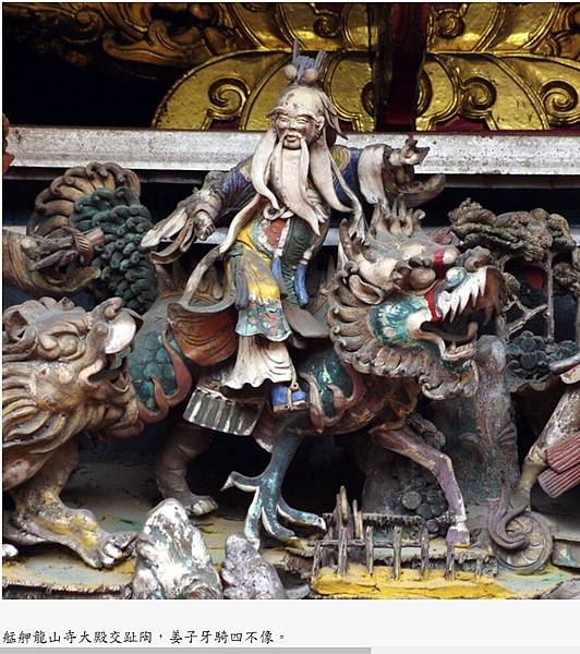 艋舺龍山寺大殿交趾陶,姜子牙騎四不像。