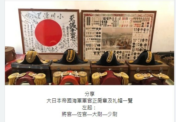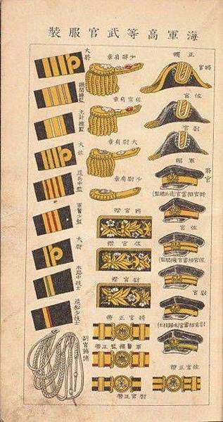 日治時期台灣懷舊照片文獻史料 | 分享 大日本帝國海軍軍官正肩章及礼帽一覽 左起: 將官—佐官—大尉—少尉 | Facebook