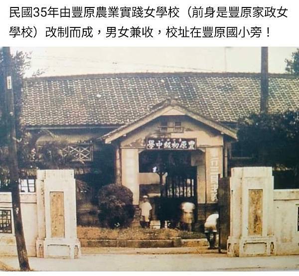 1.校名是「家政女學校」、後來改為「農業實踐學校」,是豐原初中的前身
