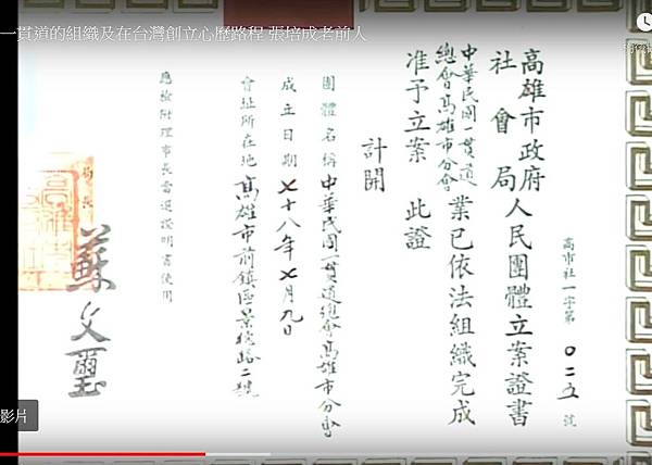 成立中華民國一貫道總會,張老前人榮膺理事長職。