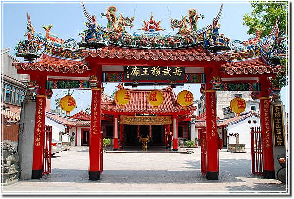 西元一八九九年秋,殿堂落成,為閩南式宮殿造形,廟貌巍峨,由本宮第一代總董陳祖疇,自杭州岳王廟分香迎回神像,奉為開基主神晉安座,成為台灣唯一專祀岳武穆王廟宇。