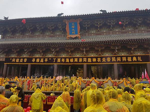 5月3日上午,「問祖炎帝•尋根高平」丁酉年海峽兩岸同胞神農炎帝民間拜祖典禮在高平炎帝陵炎帝廣場隆重舉行。當地各界數千民眾與專程前來拜祖的600餘名台灣同胞齊聚炎帝故里,同拜華夏人文始祖,共祈中華民族復興。