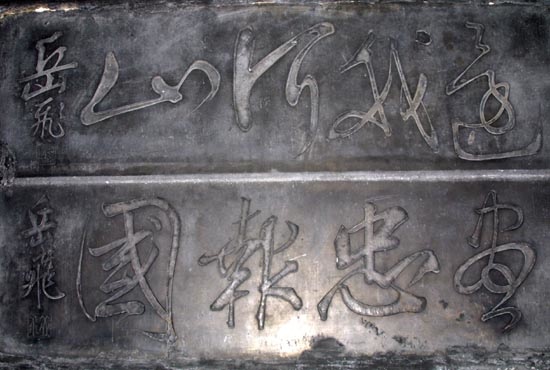 岳飛的書法令人稱道,著名的「還我河山」草書四字匾額氣勢磅礴。