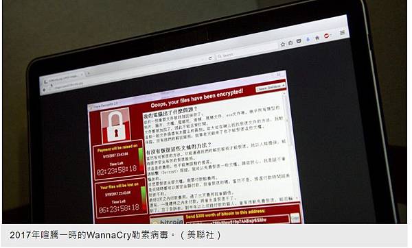 2017年喧騰一時的WannaCry勒索病毒。(美聯社)https://is.gd/bjRF1j