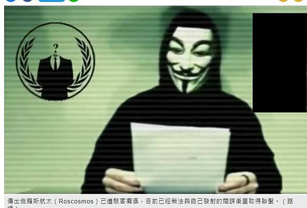 〔即時新聞/綜合報導〕全球最大駭客組織「匿名者」(Anonymous)宣布對俄羅斯發起「網路戰爭」,號召全球各地駭客攻擊俄國,現傳出俄羅斯航太(Roscosmos)已遭駭客癱瘓,目前已經無法與自己發射的間諜衛星取得聯繫。