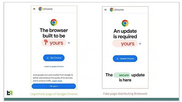 資安公司ThreatFabric 發佈最新偵測報告指出,不肖網路犯罪分子利用一款鎖定安卓系統裝置的銀行木馬程式「Brokewell」,近來在網路散播以假冒Google Chrome瀏覽器更新的視窗頁面作為釣魚誘餌,一旦誤信為真點擊山寨版畫面出現的更新按鈕後,就會在手機裝置上安裝「Brokewell」木馬程式,並透過覆蓋攻擊的技術,當用戶使用手機於安裝下載的應用程式App(如網路銀行),於登入頁面輸入帳號密碼等個資時,該覆蓋攻擊技術就會自動地捕獲用戶的帳密資訊,甚至還可能取得遠端接管手機的控制權限、用戶手機憑證,並把這些資料傳送到架設的伺服器上。