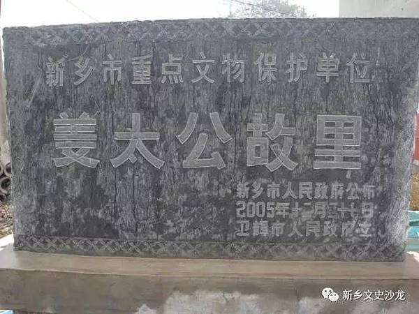 經注》還記載了太公廟與廟碑,上曰「汲城東門北側有太公廟,廟前刻有石碑,上說會稽太守杜宣和汲縣縣令崔瑗認定太公故里在汲縣,仍有舊居保存完整」。