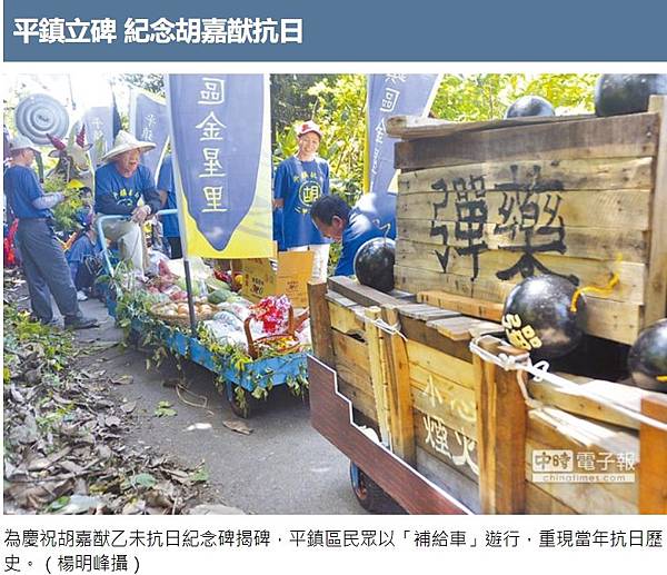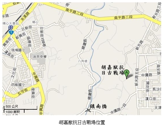 胡嘉猷的抗日古戰場是在平鎮,不是在楊梅