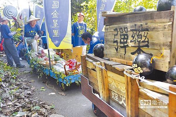 桃園市平鎮區平南里設計的補給車也參加踩街遶境。圖/桃園市客家事務局提供
