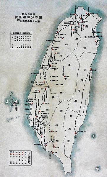 昭和3年(1928)臺灣巡迴書庫及全島圖書館分布圖