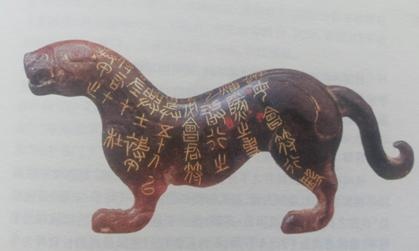 現為法國巴黎陳氏所收藏,上有錯金銘文四行:“甲兵之符,右在王,左在新。凡興士披甲,用兵五十人以上,必會王符。燔燧事,雖毋會符,行毆。”