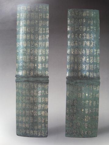 此“金節”用銅鑄成,因形似劈開的竹節,故名“節”。這種“車節”和“舟節”,迄今為止僅此一見,因而極為珍貴。為防奸杜偽,在鑲嵌工藝的基礎上進行“錯金銀”再創作,故又稱《錯金鄂君啟金節》。錯金銀也叫“金銀錯”,其方法是在青銅器鑄造時鑄出腰槽,將金銀片、絲放入槽內,錘打後錯實磨平。這一工藝是在春秋時期產生的,應用至今。《鄂君啟節》銘文挺拔秀麗,圓潤秀勁,莊嚴肅穆是錯金銘文中的精品。