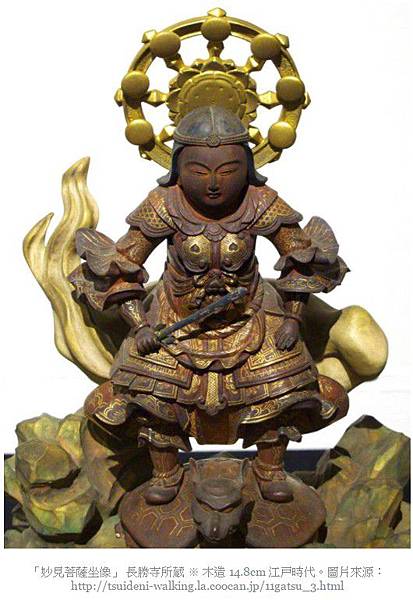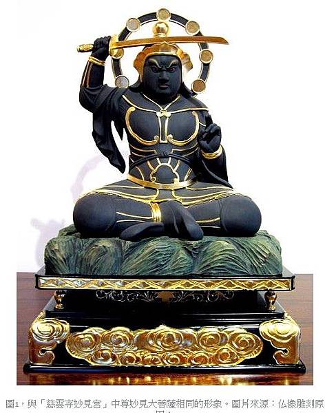 圖1,與「慈雲寺妙見宮」中尊妙見大菩薩相同的形象。圖片來源:仏像雕刻原田:http://www.butuzo.jp/category/%E6%97%A5%E8%93%AE%E5%AE%97%E6%A7%98-%E6%B3%95%E8%8F%AF%E5%AE%97%E6%A7%98/%E5%A6%99%E8%A6%8B%E5%A4%A7%E8%8F%A9%E8%96%A9%E5%83%8F