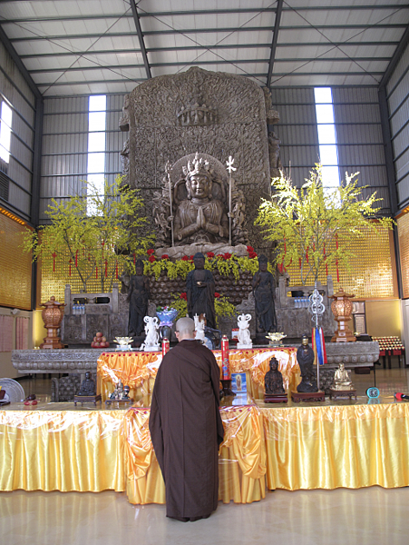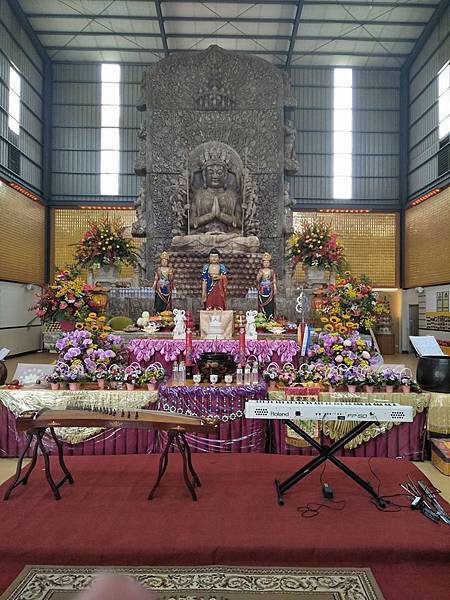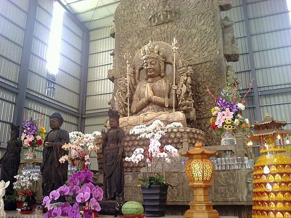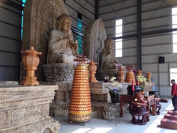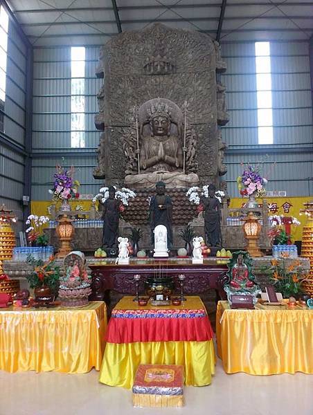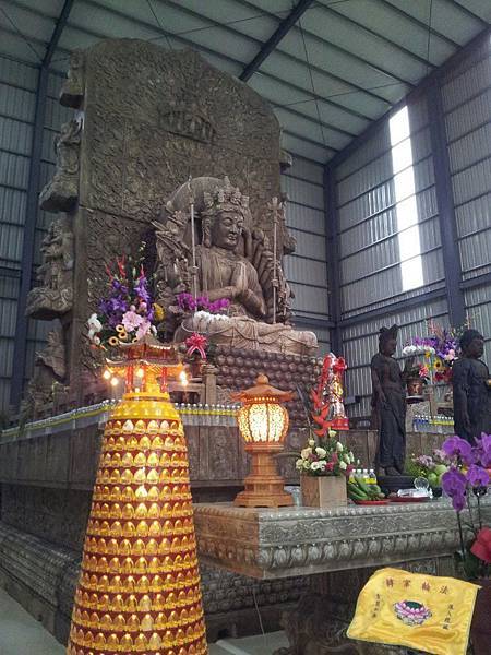 竹北大佛王寺是住持性釋巖發下宏願,要在新竹地區弘揚千手觀音的佛法,目前正在興建中,雖以簡陋的鐵皮屋搭建,但不損其莊嚴感。 (記者彭新茹攝)