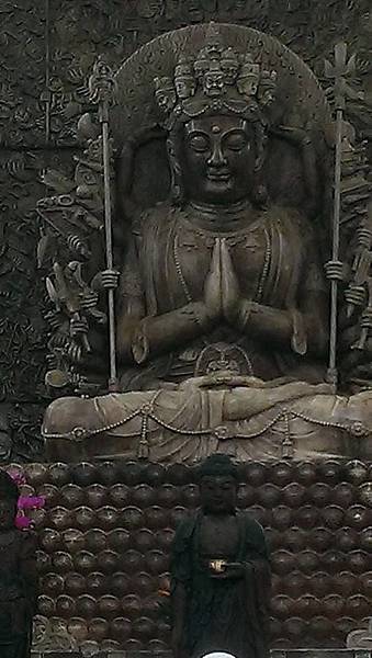這跟大佛王寺另1個千手觀音殿內觀音聖像背光用88尊菩薩呈現大悲咒經文,且在底座用圖、文篆刻呈現普門品經文的創意雷同。