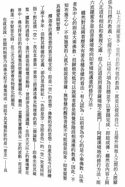 可見,它的順序是從布施順著持戒、安忍、精進、靜慮而到智慧,也可以反過來從智慧而到布施,但就是不能從中間任何一個顛來倒去;比如:以為能持戒就能夠靜慮,那不一定!為什麼?因為其中一定要有安忍的工夫與精進的修行,持戒能不傷害別人,但傷害了自己也不行。如果你這麼說:我不懈怠,我放逸一下,或者我少做一點總可以吧?但基於六波羅蜜次第生法的道理,是從布施一直順行到第六智慧波羅蜜,或者從智慧反過來回到布施也可以,千萬不要混淆了!尤其,大般若經針對這點說得最詳細,說般若波羅蜜多行、般若波羅蜜多法、般若波羅蜜多次第的生起,同樣都是般若波羅蜜多,但後面加了有行、有法還有次第生起的文字,因此很多人看般若經,看到這一段都會打瞌睡,因為前面所有的文字都相同,只有後面的一、兩個字不相同,要知道這究竟是為什麼?如果懂得其行法、對治法與次第生起的方法,那看般若經就會愈看愈喜悅。