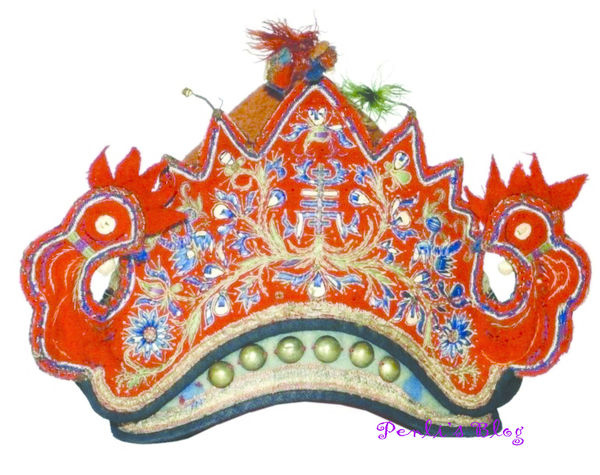 (圖三)結合了文士帽及五佛冠再加上一對公雞頭的童帽。