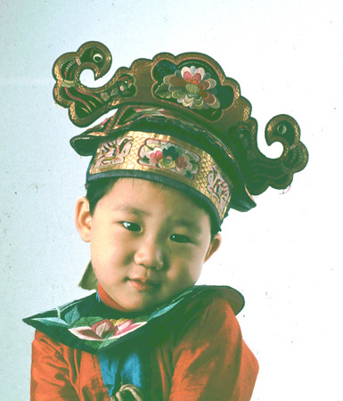 (圖四)這是我兒兩歲半的時候,為了文物館童衣特展時拍的廣告。頭上戴的正是圖一的