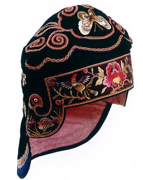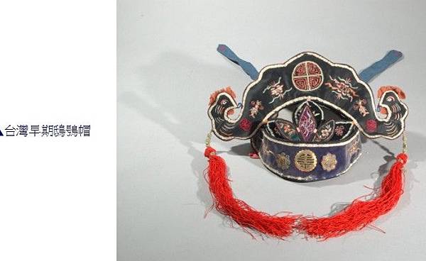 童帽,在台灣早期傳統服飾的現存收藏品中,數量不少。除了刺繡精美,樂於被保留收藏外,因為蘊含著長輩對幼兒的祝福,在許多傳統服飾都已愈趨簡單或日化、西化的時期,童帽仍然常見於幼兒的衣飾中,我們從一些老照片中,可見到大人的服飾已現代化了,幼兒頭頂上仍然戴有傳統的刺繡童帽。