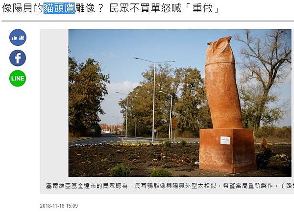 像陽具的貓頭鷹雕像? 民眾不買單怒喊「重做」 - 國際 - 自由時報電子報 - https://goo.gl/x6VWmS