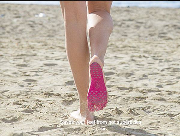 NakeFit有彈性,具備防割、防熱、防水、防滑等功能,所以使用它在滾燙的沙地或崎嶇的岩岸行走,都不成問題。而在游泳池下水,或直接踏進溫泉池裡也都可以,其防水、防滑的特性都能起作用。