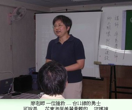 我是師大音樂系 68 級的校友。目前在中正高中音樂班任教,出生在新竹縣北埔鄉,對山路迤邐,野杜鵑油桐花滿地的家鄉,如今只有在夢裡敢相見。老街拆除,截彎取直,使得我不忍再見老家。嫁做花蓮媳婦之後,對於第二故鄉的大山大水,驚為天人,覺得不論做為一個文化人或者是兩個孩子的媽媽,我都有責任捍衛這最後一片淨土!
