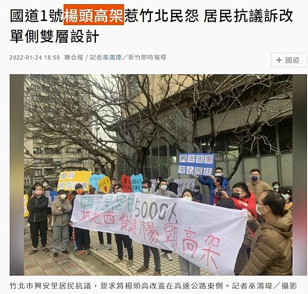 國道1號楊頭高架惹竹北民怨 居民抗議訴改單側雙層設計 | 桃竹苗 | 地方 | 聯合新聞網 https://bit.ly/3AsJRKi