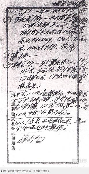 ▲蔣經國密電決定林茂生命運。(戚嘉林提供)
