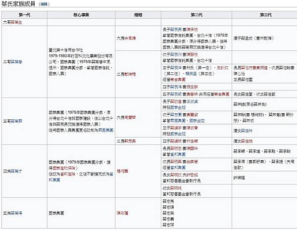 國泰蔡家與富邦蔡家是由蔡氏兄弟(蔡萬春、蔡萬霖、蔡萬才、蔡萬得等人)一手建立起來,最早始於1957年,由蔡家二男蔡萬春擔任台北市第十信用合作社(台北十信)理事長開始。1962年時蔡萬春與蔡萬霖兄弟創立國泰人壽,之後不斷擴充事業版圖,1979年蔡萬春中風退休,國泰集團分家,二哥蔡萬春之子蔡辰男與蔡辰洲兄弟分得國泰信託集團、國泰人壽(後將國泰人壽與叔叔蔡萬霖交換獲得台北十信),三哥蔡萬霖分得台北十信與國泰建設(後以台北十信與姪子蔡辰男交換獲得國泰人壽),四弟蔡萬才值掌國泰產物保險。