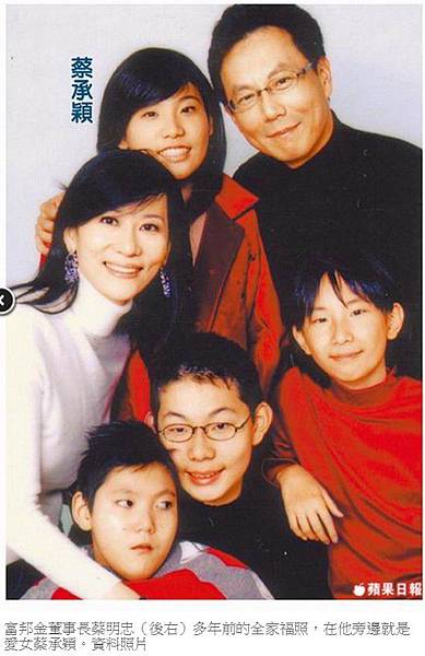 富邦金董事長蔡明忠(後右)多年前的全家福照,在他旁邊就是愛女蔡承穎。資料照片