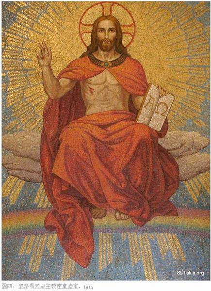 譬如,當你看著美國聖路易斯州聖殿主教座堂20世紀初的鑲嵌畫(見下圖)時,它會比圖三更能表現出耶穌無所不能的權柄嗎?