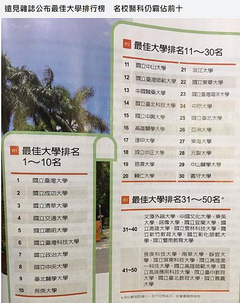 遠見全台大學評鑑出爐2018台灣最佳大學誰當家 2018年《遠見雜誌》「最佳大學排行榜」結果出爐 https://goo.gl/PBfFNj