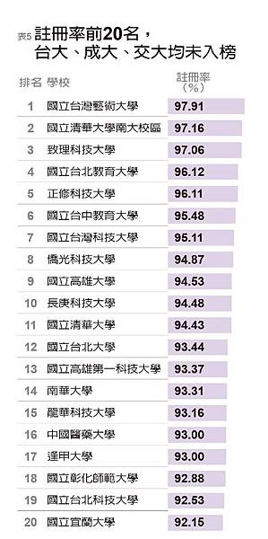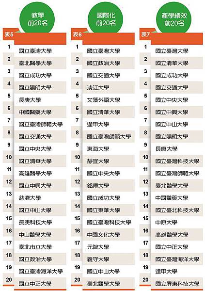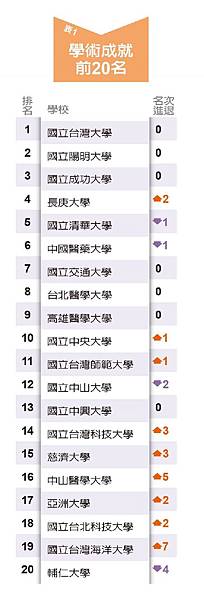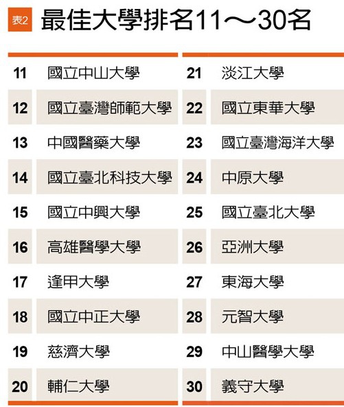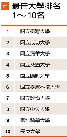 綜合大學榜,去年清大首度超越成大,今年成大扳回一城,前四強回到台成清交格局。(表1)