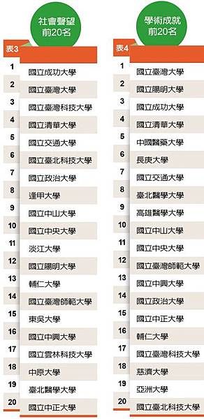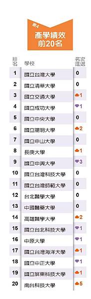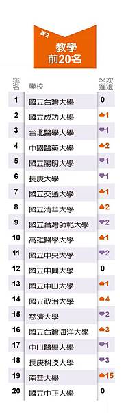 北商大、致理、勤益及北護大首次進入20強,南臺及弘光則是首次進入前10大(表4)。