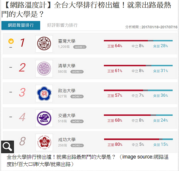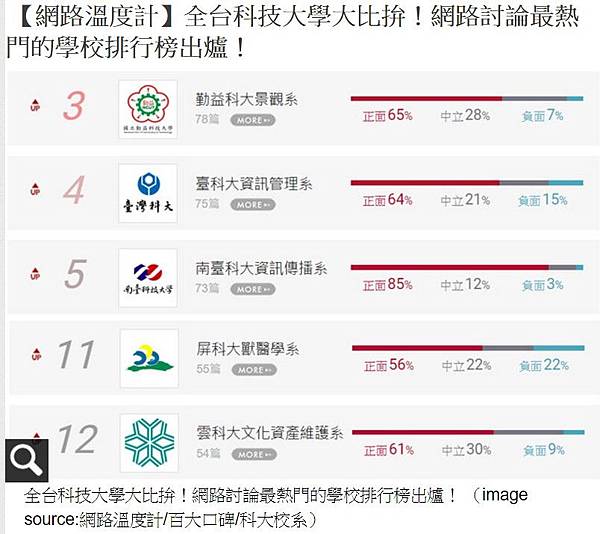 全台科技大學大比拚!網路討論最熱門的學校排行榜出爐! (image source:網路溫度計/百大口碑/科大校系)
