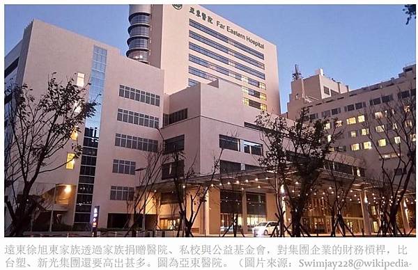 遠東徐旭東家族透過家族捐贈醫院、私校與公益基金會,對集團企業的財務槓桿,比台塑、新光集團還要高出甚多。圖為亞東醫院。(圖片來源:Swimjay228@wikipedia-CC BY 4.0)