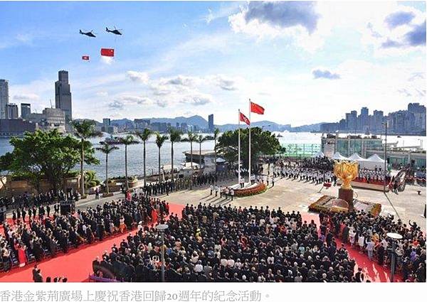 香港金紫荊廣場上慶祝香港回歸20週年的紀念活動。