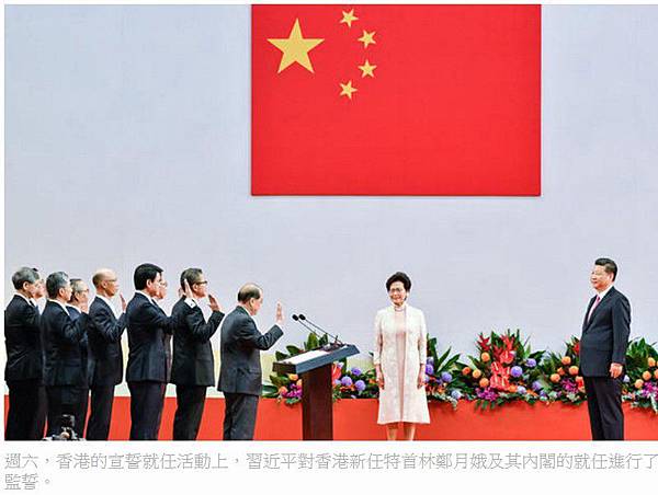 週六,香港的宣誓就任活動上,習近平對香港新任特首林鄭月娥及其內閣的就任進行了監誓。