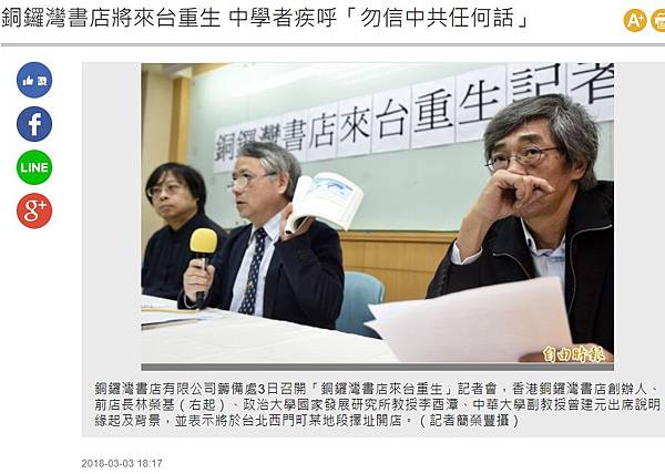 銅鑼灣書店在台重生 紐時:如自由社會燈塔銅鑼灣書店在台重生 紐時:如自由社會燈塔 https://bit.ly/2DMvmrt