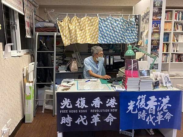 銅鑼灣書店在香港被迫停業,今年4月在台北重生。每天中午到晚間9時,林榮基在店內向顧客推薦書籍。這家店同時也是他的家,林榮基就睡在收銀台後方的雙層床上。