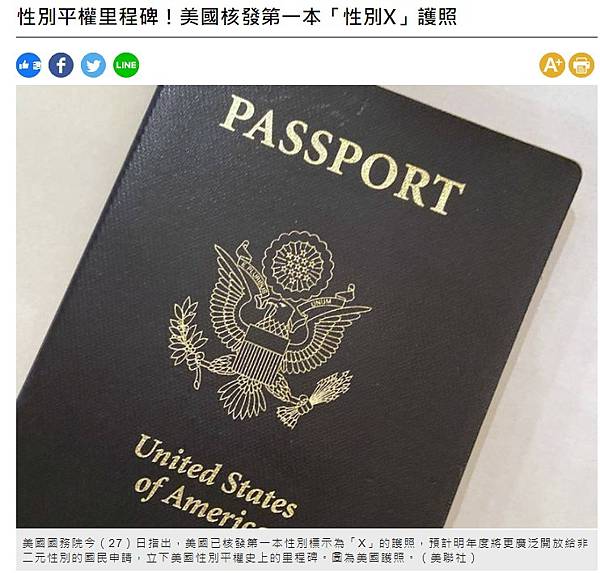 性別平權里程碑!美國核發第一本「性別X」護照 - 國際 - 自由時報電子報 https://bit.ly/3jGYKkU