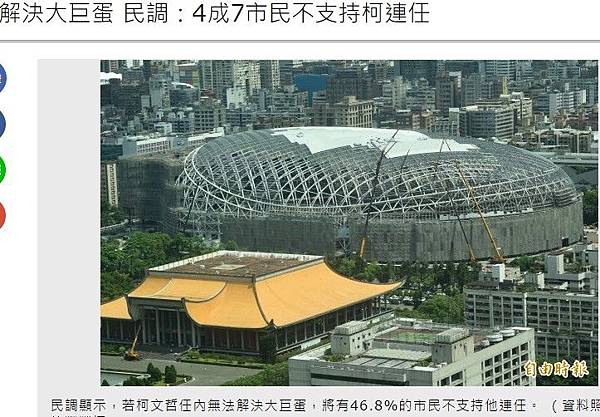若不解決大巨蛋 民調:4成7市民不支持柯連任 - 政治 - 自由時報電子報 - https://goo.gl/H9eocS