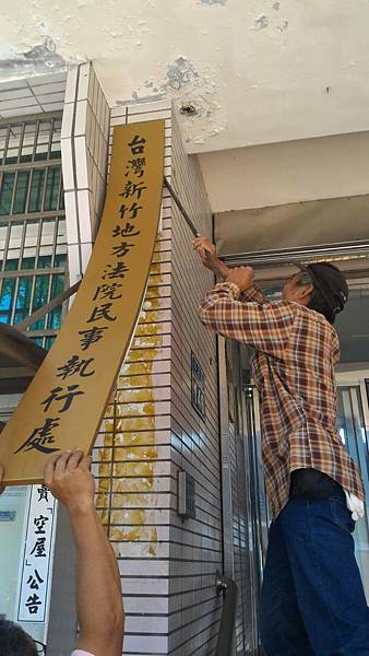今天新竹地院外「台灣新竹地方法院民事執行處」招牌已拆除卸下,未來將放置於法院新位...