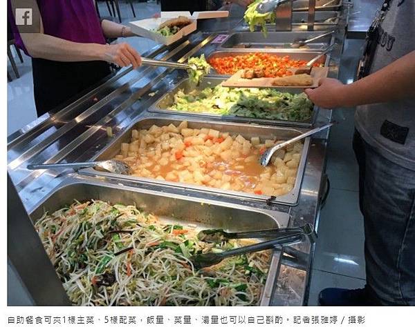 自助餐食可夾1樣主菜、5樣配菜,飯量、菜量、湯量也可以自己斟酌,這樣只要50元。...