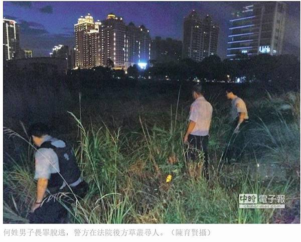 竹地方法院昨天下午發生一名何姓槍砲嫌犯脫逃意外,竹縣警方從昨天下午4時搜索至今天11時為止,已搜索超過19小時,但目前為止仍一無所獲。記者張雅婷/翻攝