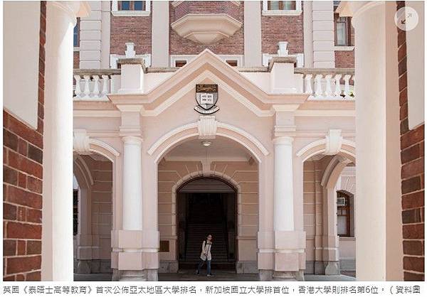 亞太地區大學排名港大屈居第6 新加坡國立稱冠